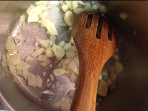 4. Add the garlic and tomato paste. Fry for about 30 seconds, while stirring. Be careful not to burn it. The tomato paste can stick to the bottom of the pan if you’re not stirring.