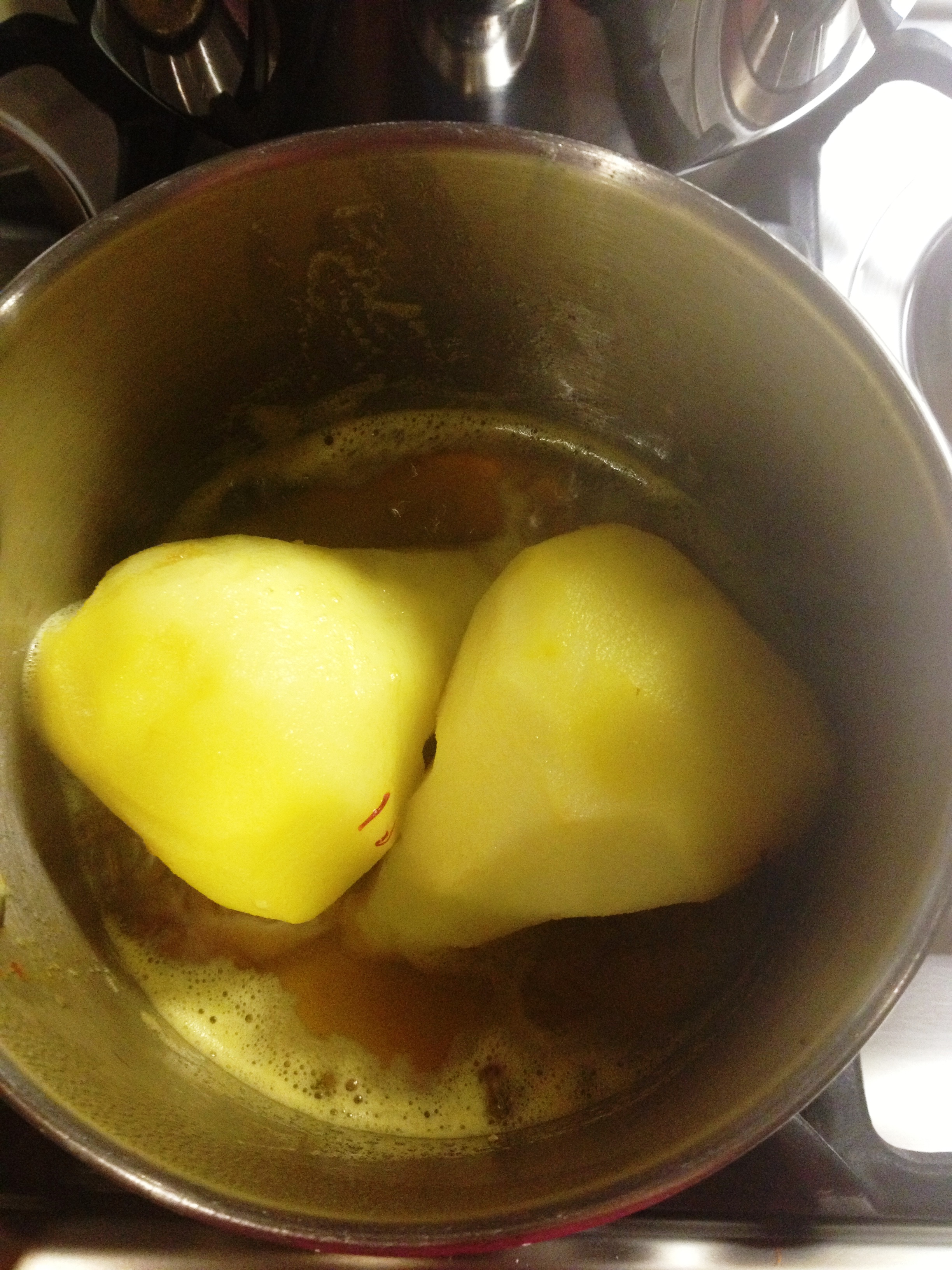 7. Simmer for 20 minutes, while basting and turning the pears every few minutes.