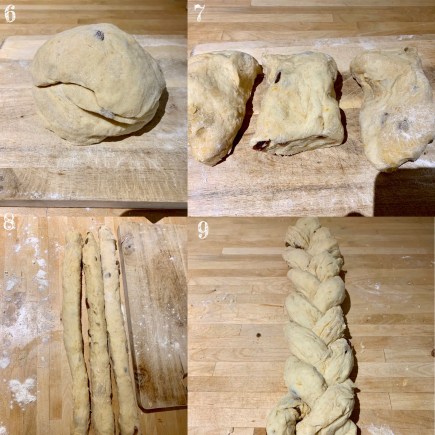 8- Braid the strips together, place on the baking tray and leave to rise for another hour, or until doubled in size.
