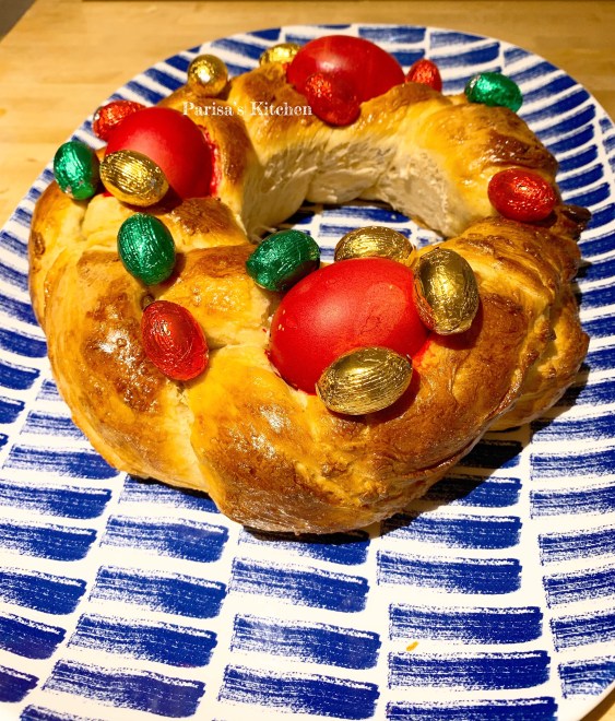 Today’s recipe is a sweet bread made during Easter in Greece, Turkey, and Armenia. It’s a braided bread and uses two unique Greek ingredients, Mahlab and Gum Mastic. Its aroma is enriched not only with these, but also orange zest and cinnamon. What makes it more beautiful is that traditionally the bread is decorated with coloured eggs on top!